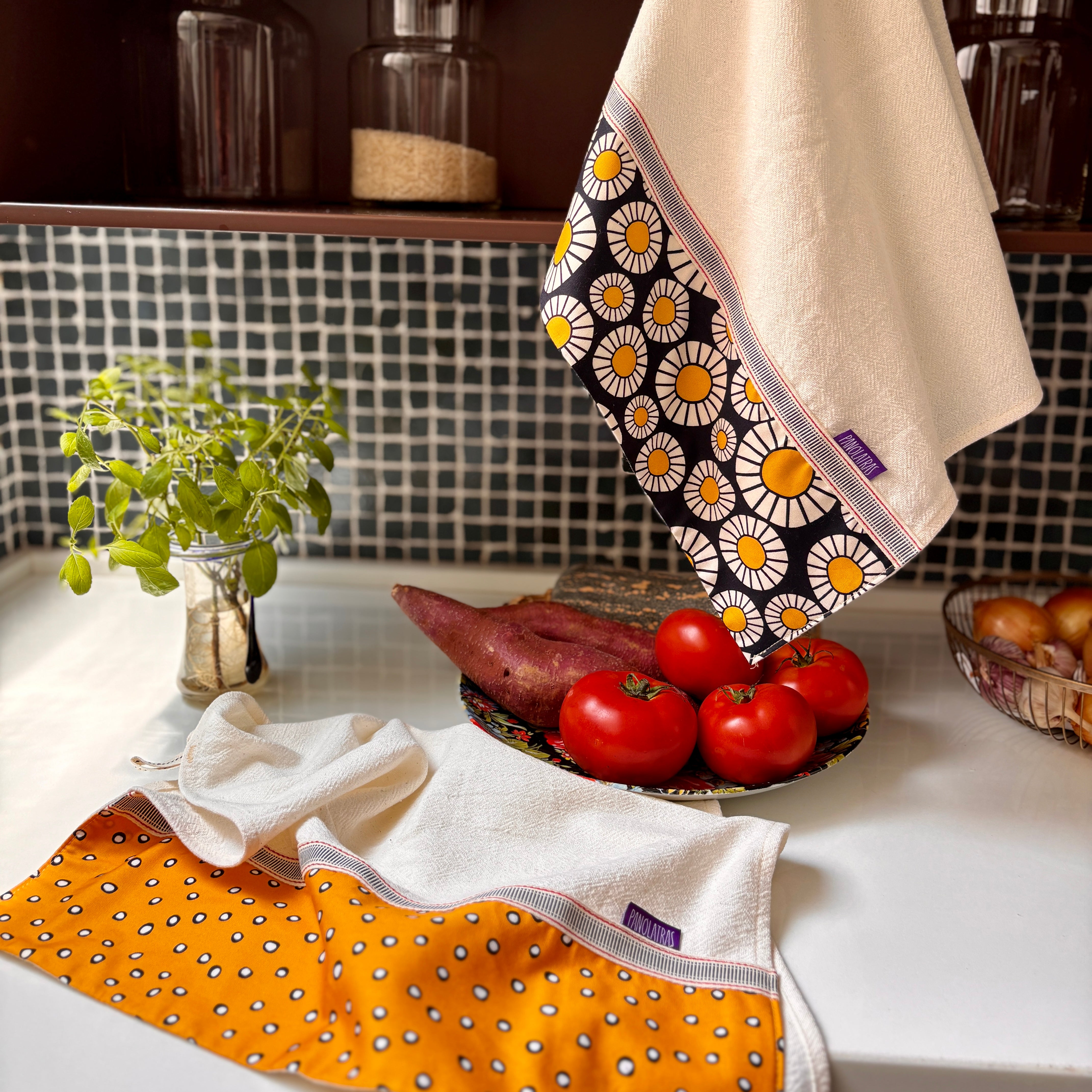As estampas Panólatras são exclusivas, criadas com traço, cor e composição que transformam tecidos em paninhos estilosos. Cada desenho nasce para decorar e trazer personalidade à casa, unindo originalidade e praticidade no dia a dia.