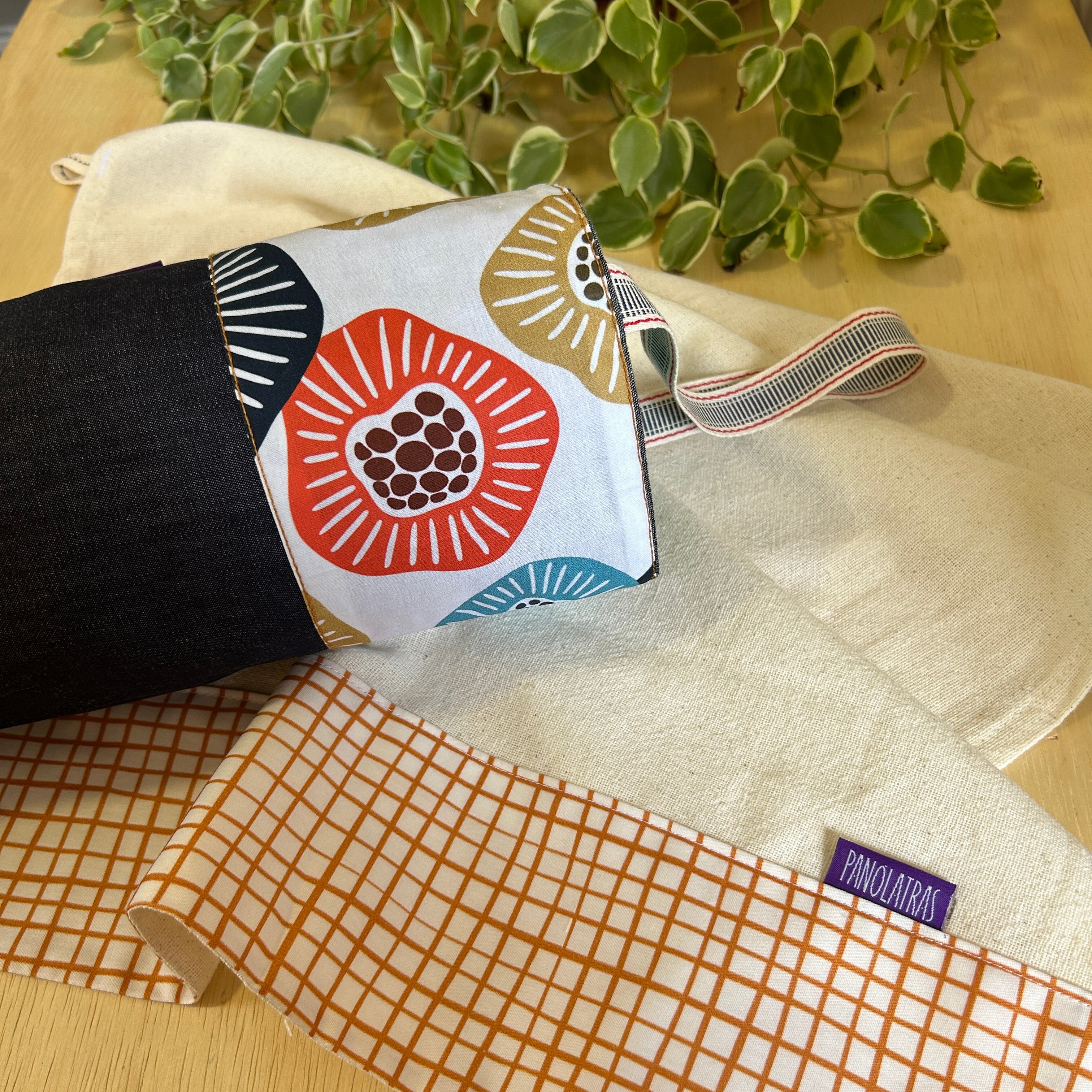 Kit Puxa Saco + Pano de Copa Rústico Caquinhos