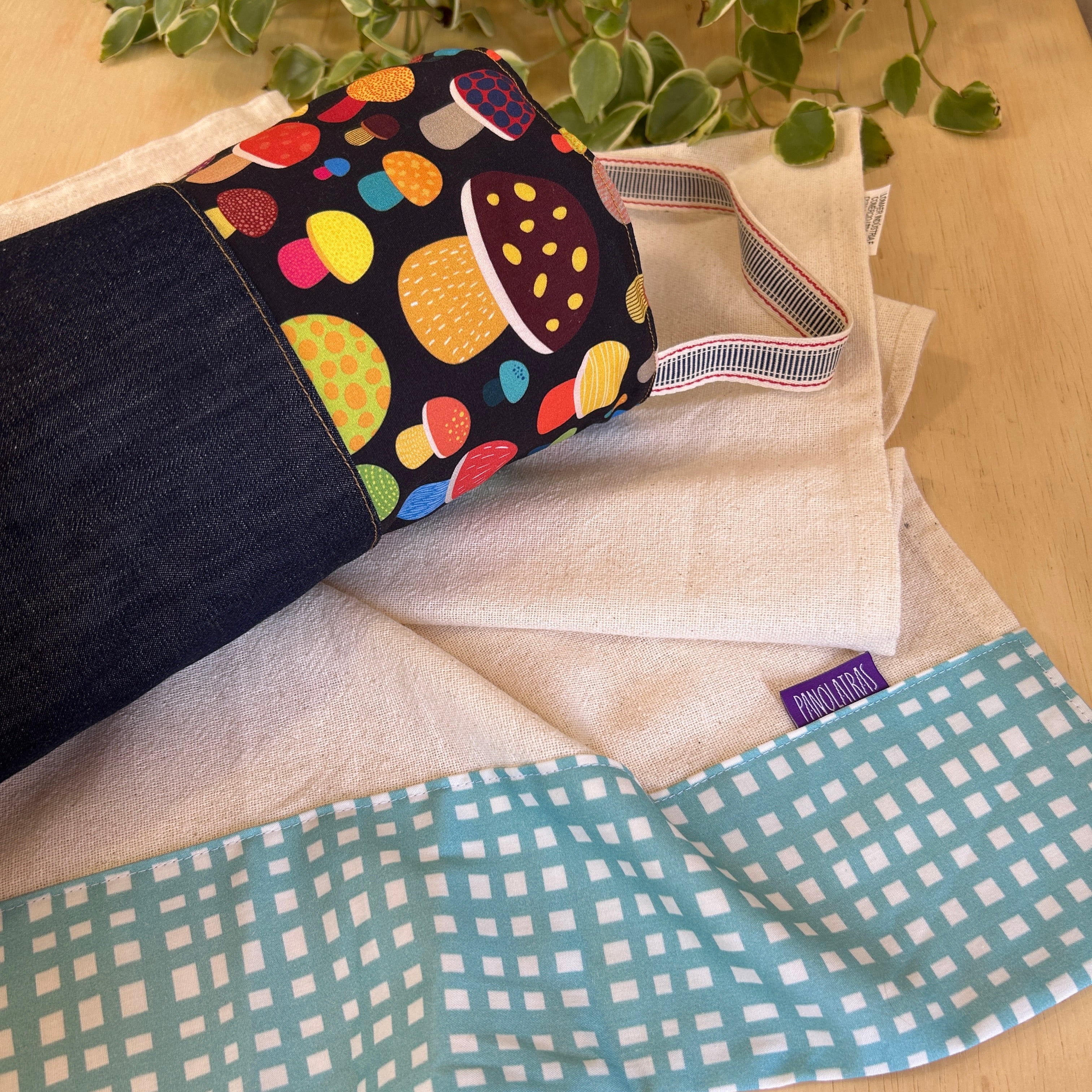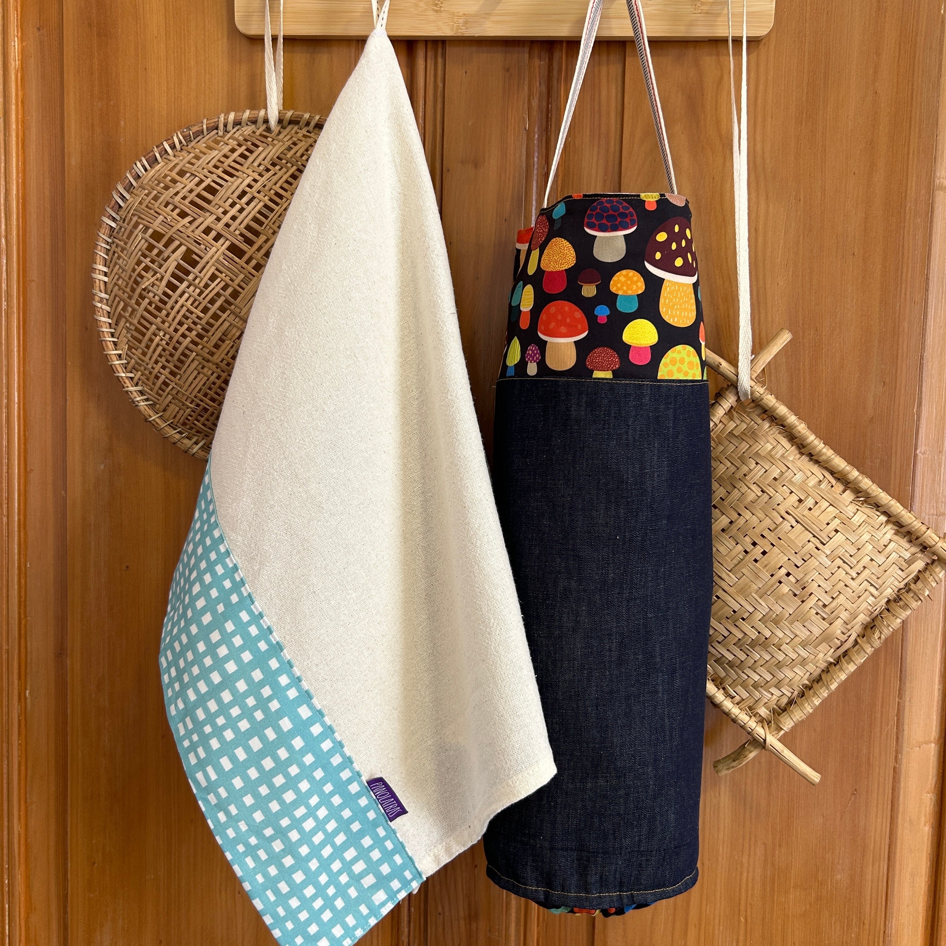 Kit Puxa Saco + Pano de Copa Rústico Cogumelos