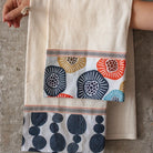 O tom cru do tecido valoriza o natural e reforça o cuidado na escolha dos materiais. O acabamento em tricoline estampada — também 100% algodão — traz cor e aquele toque moderno e estiloso à peça, com estampas Panólatras que fazem a diferença na cozinha.