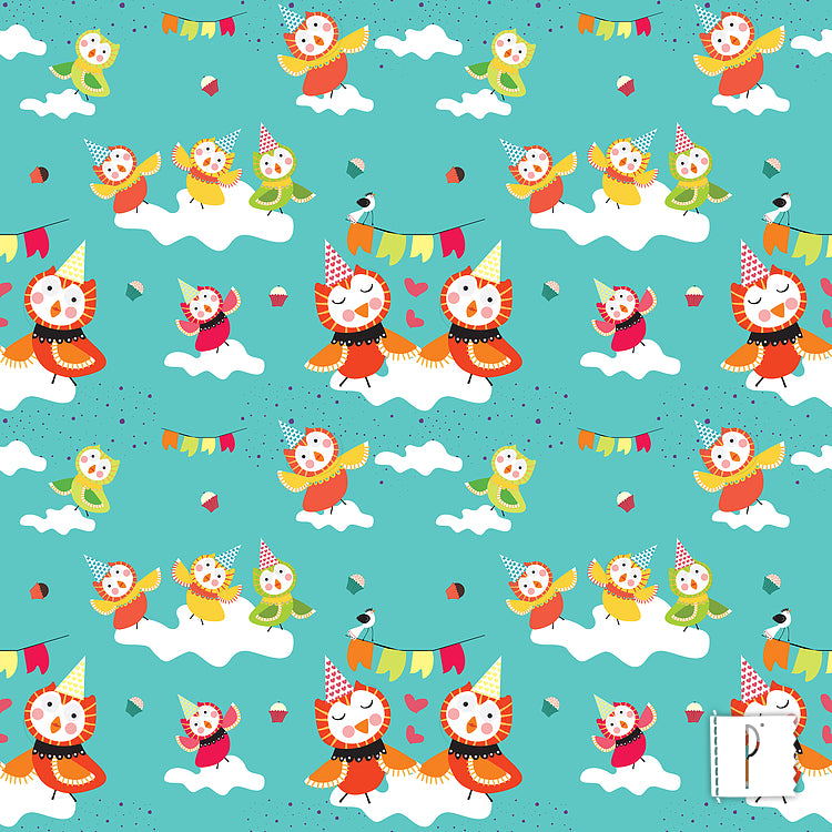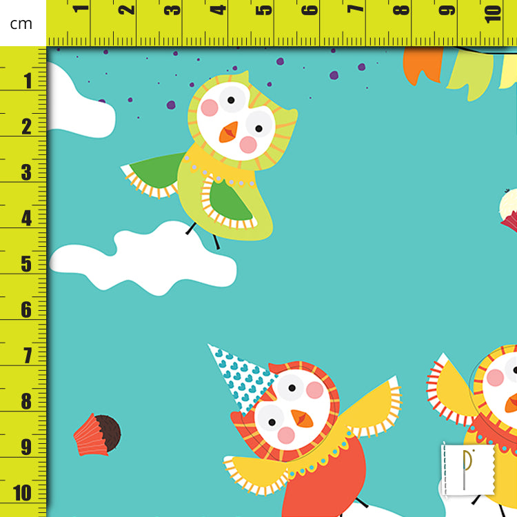 Tecido Tricoline Estampa Festa no Céu Corujas
