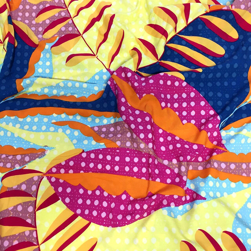 Indicada para confecção de cangas e roupas leves e soltas como saias, vestidos, camisas.