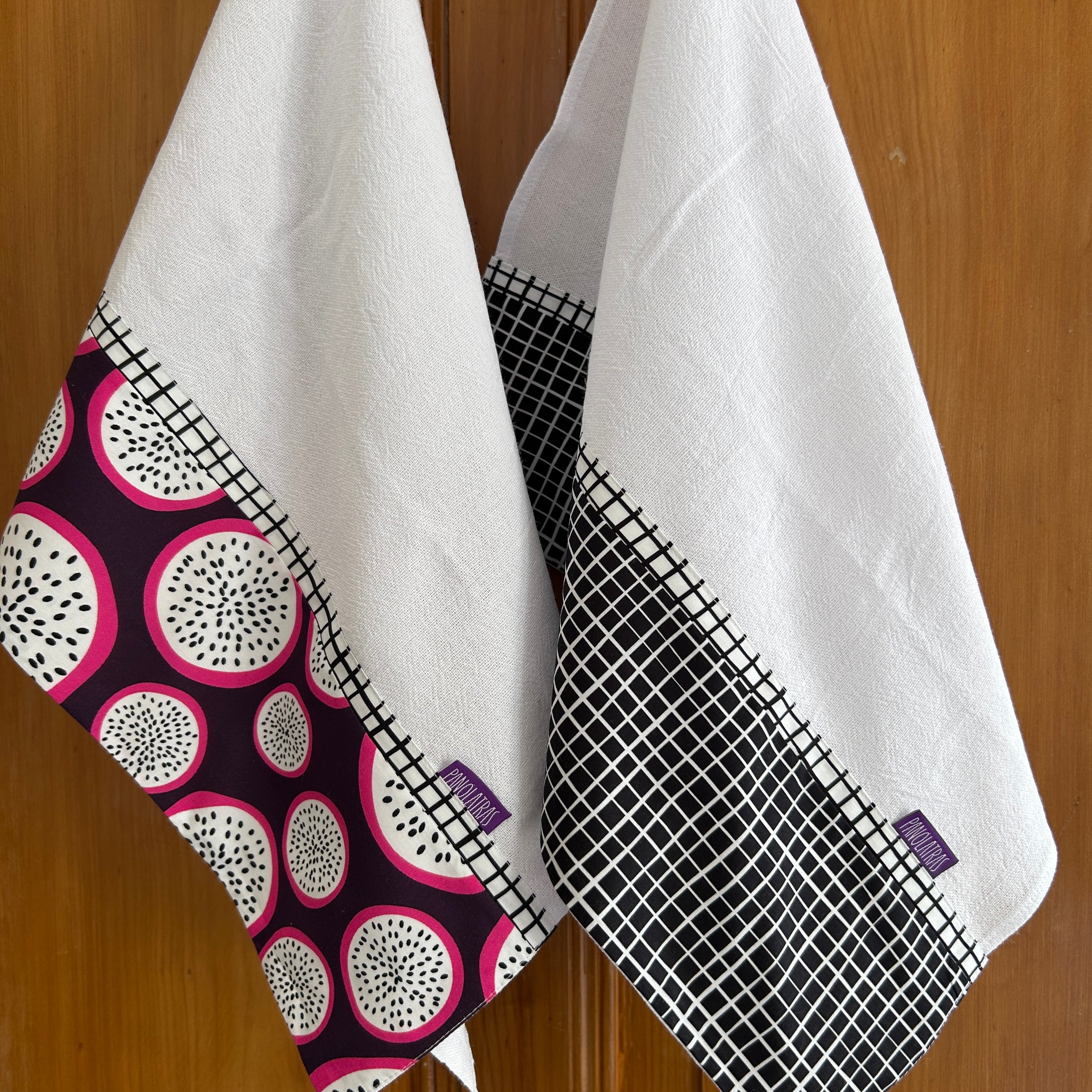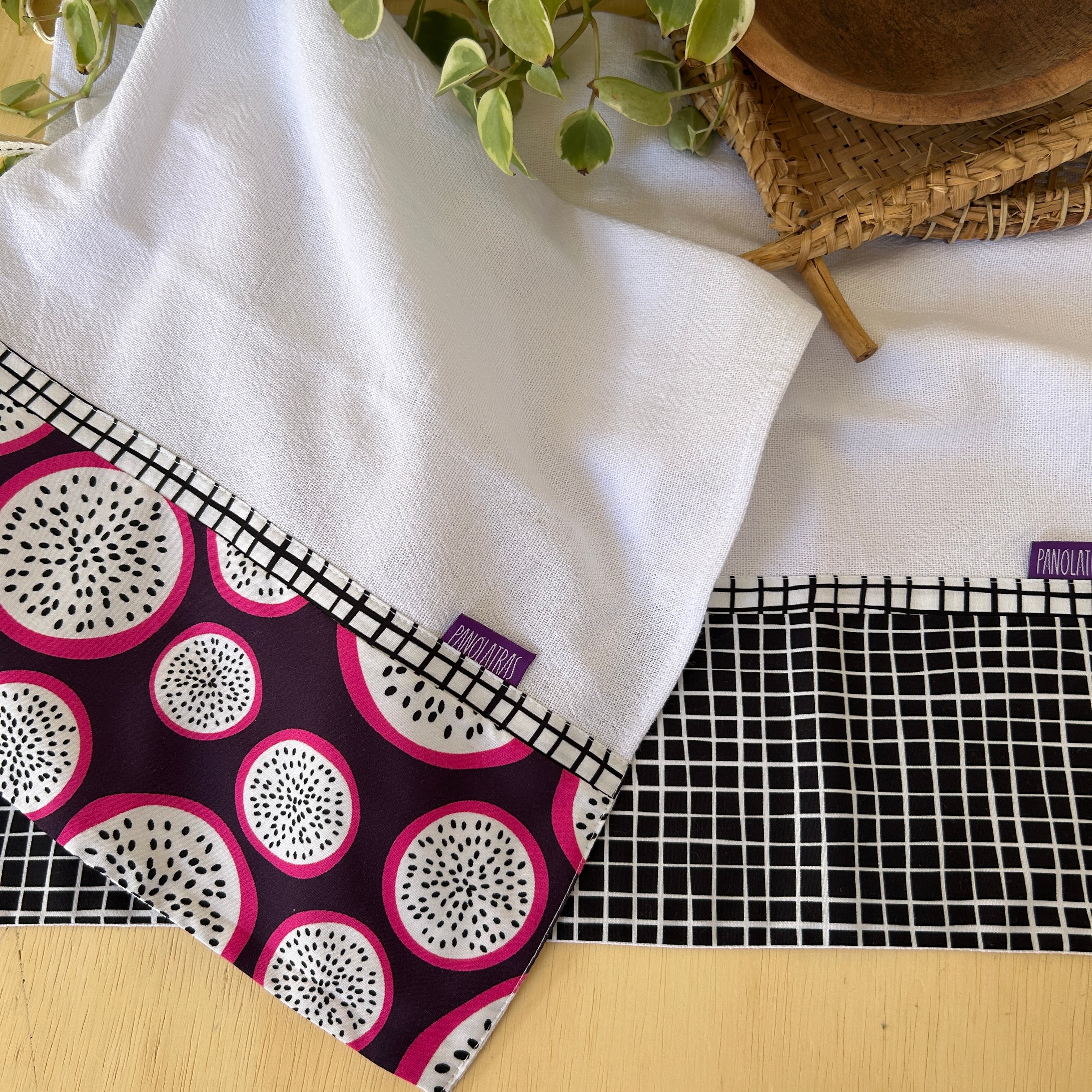 Nossos panos de prato são confeccionados artesanalmente em sacaria premium 100% algodão (trama tipo “pé de galinha”), que garante alta absorção, toque macio e resistência no uso diário.
