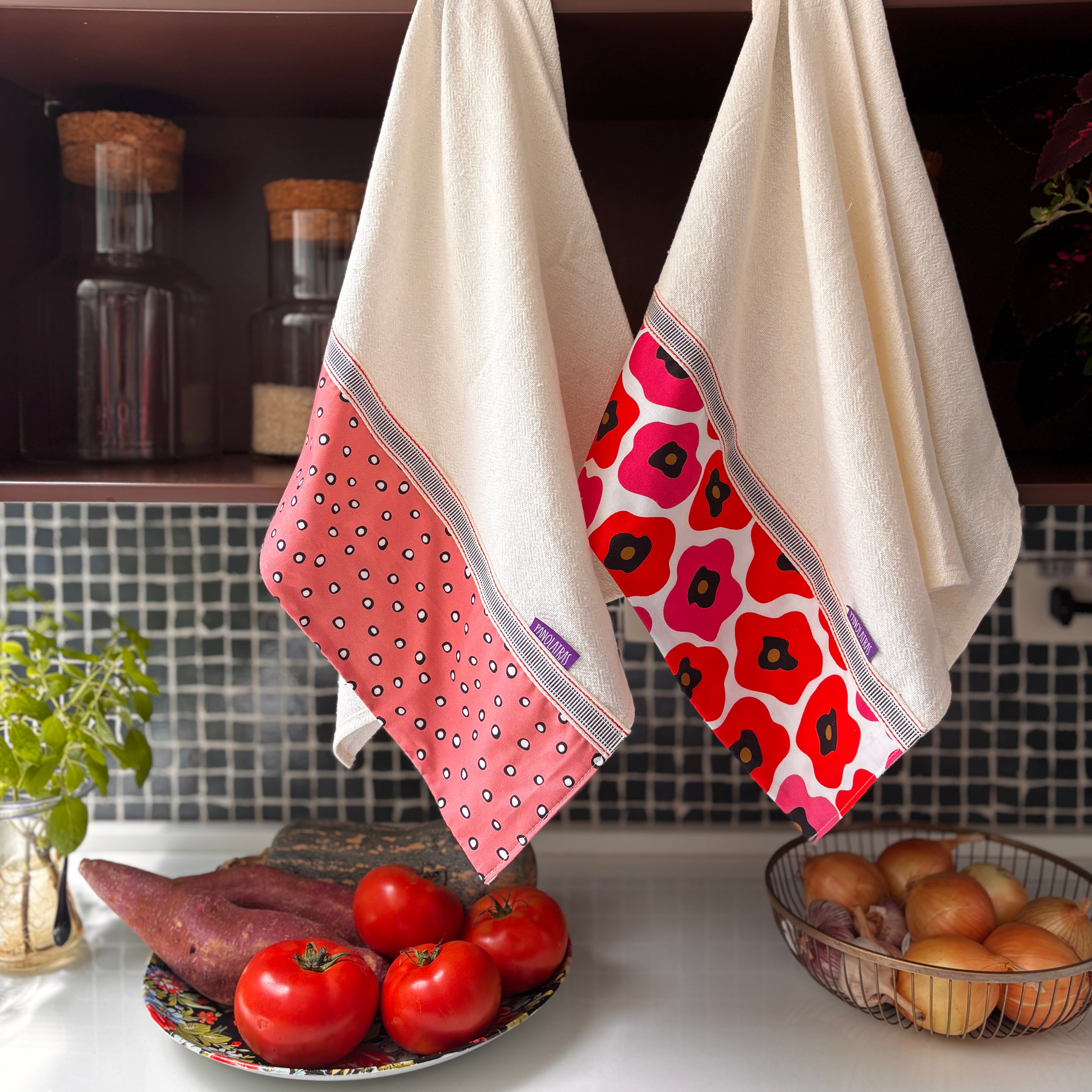 Cada kit acompanha 2 unidades, com alcinha lateral para pendurar — sempre à mão, prontas para secar, servir, apoiar ou decorar.