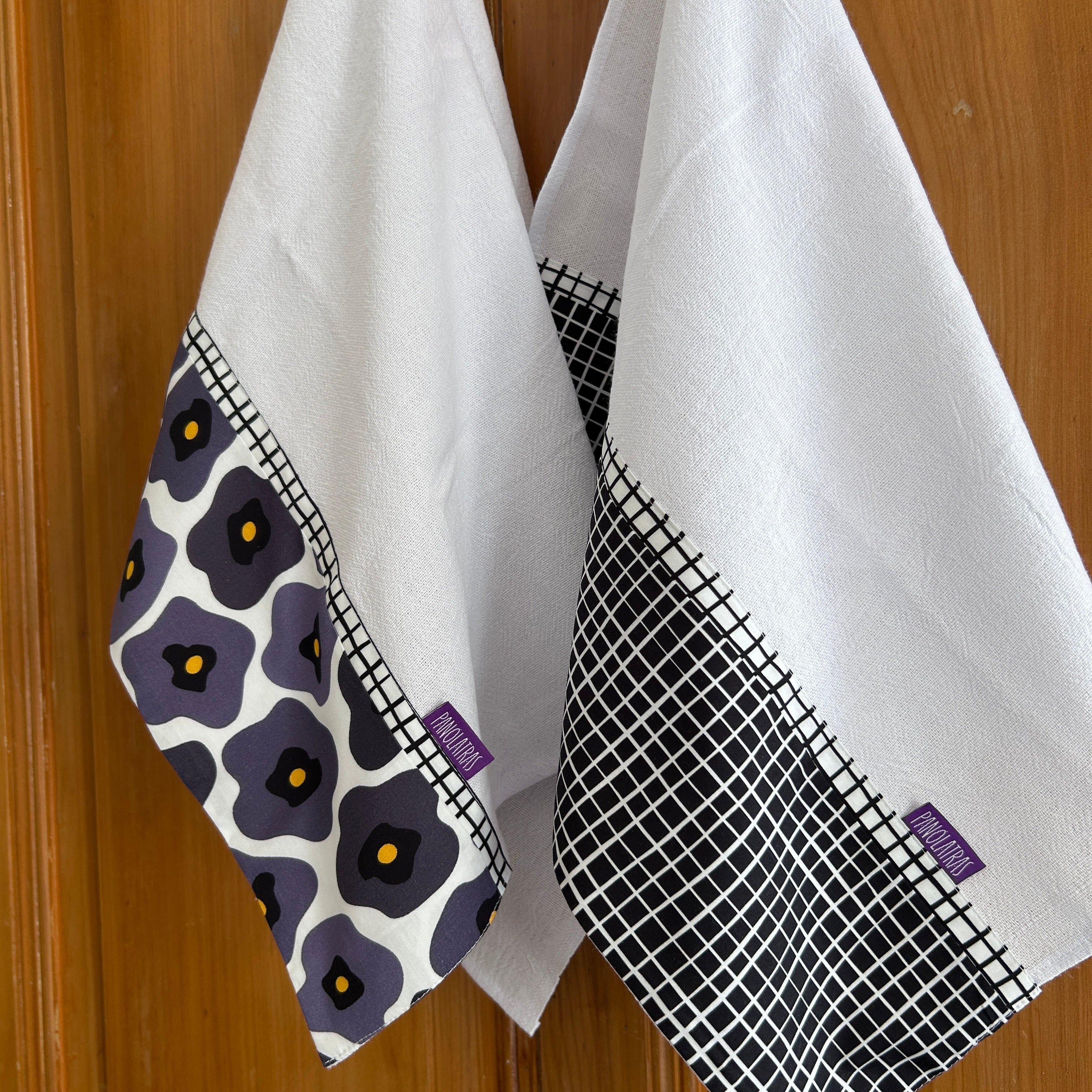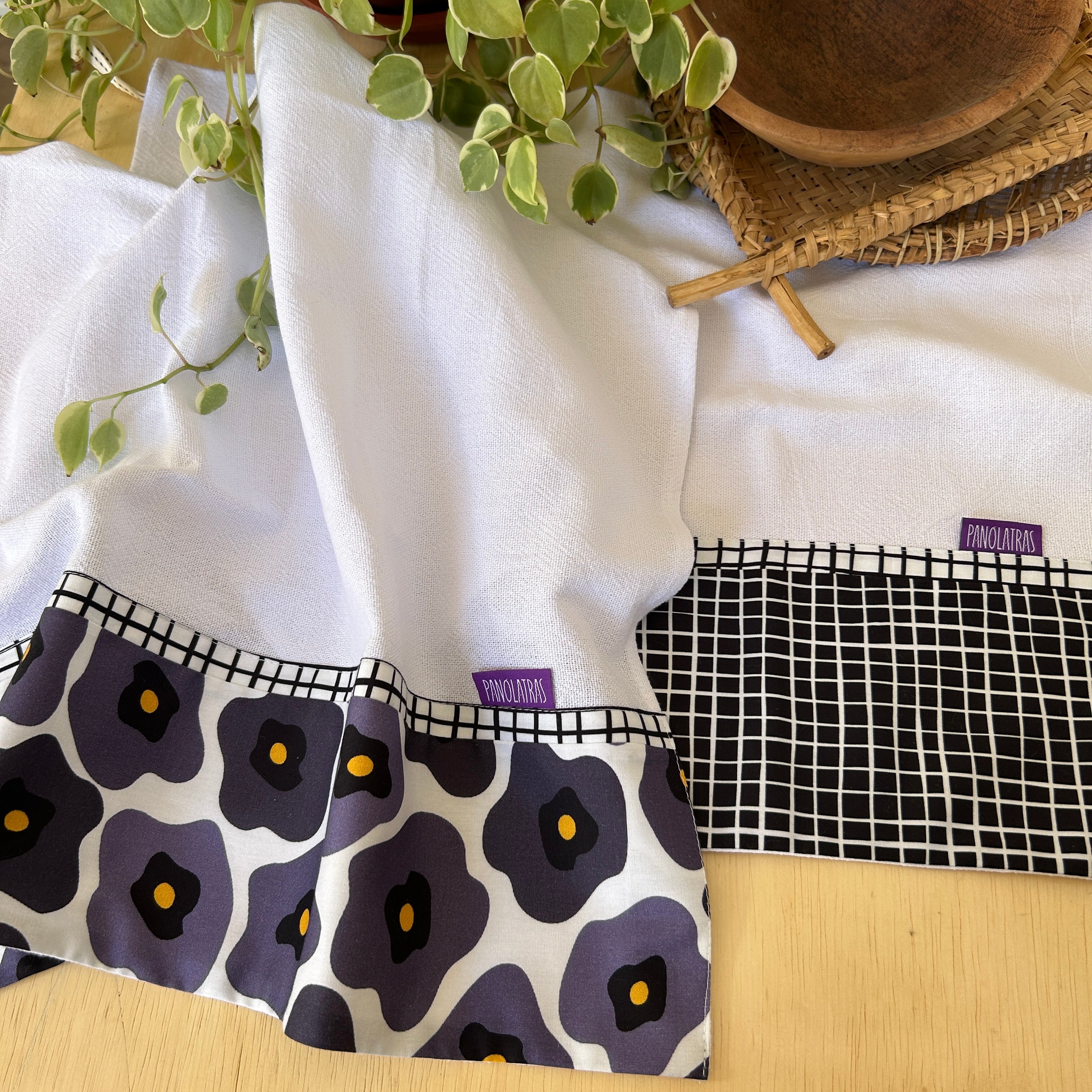 Nossos panos de prato são confeccionados artesanalmente em sacaria premium 100% algodão (trama tipo “pé de galinha”), que garante alta absorção, toque macio e resistência no uso diário.