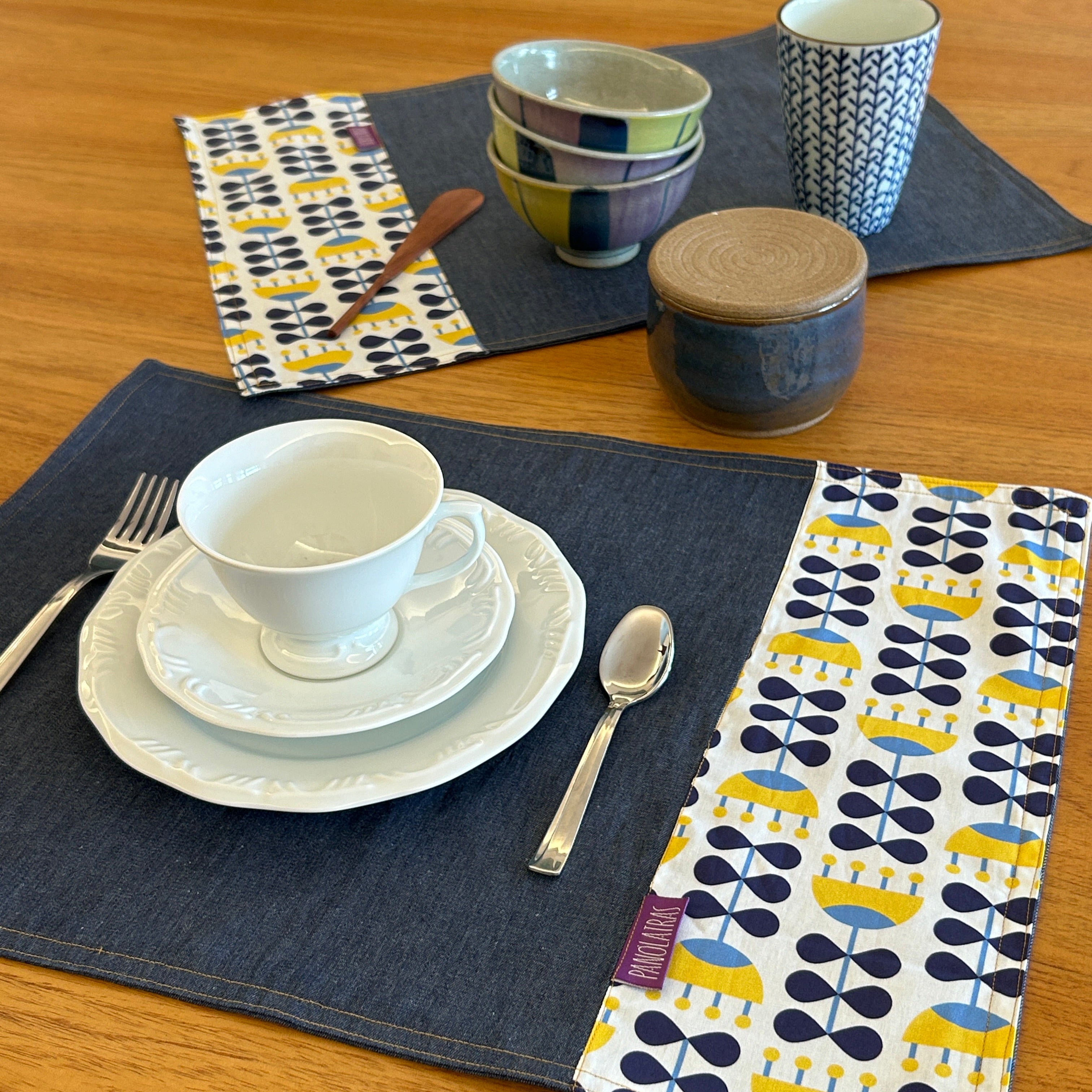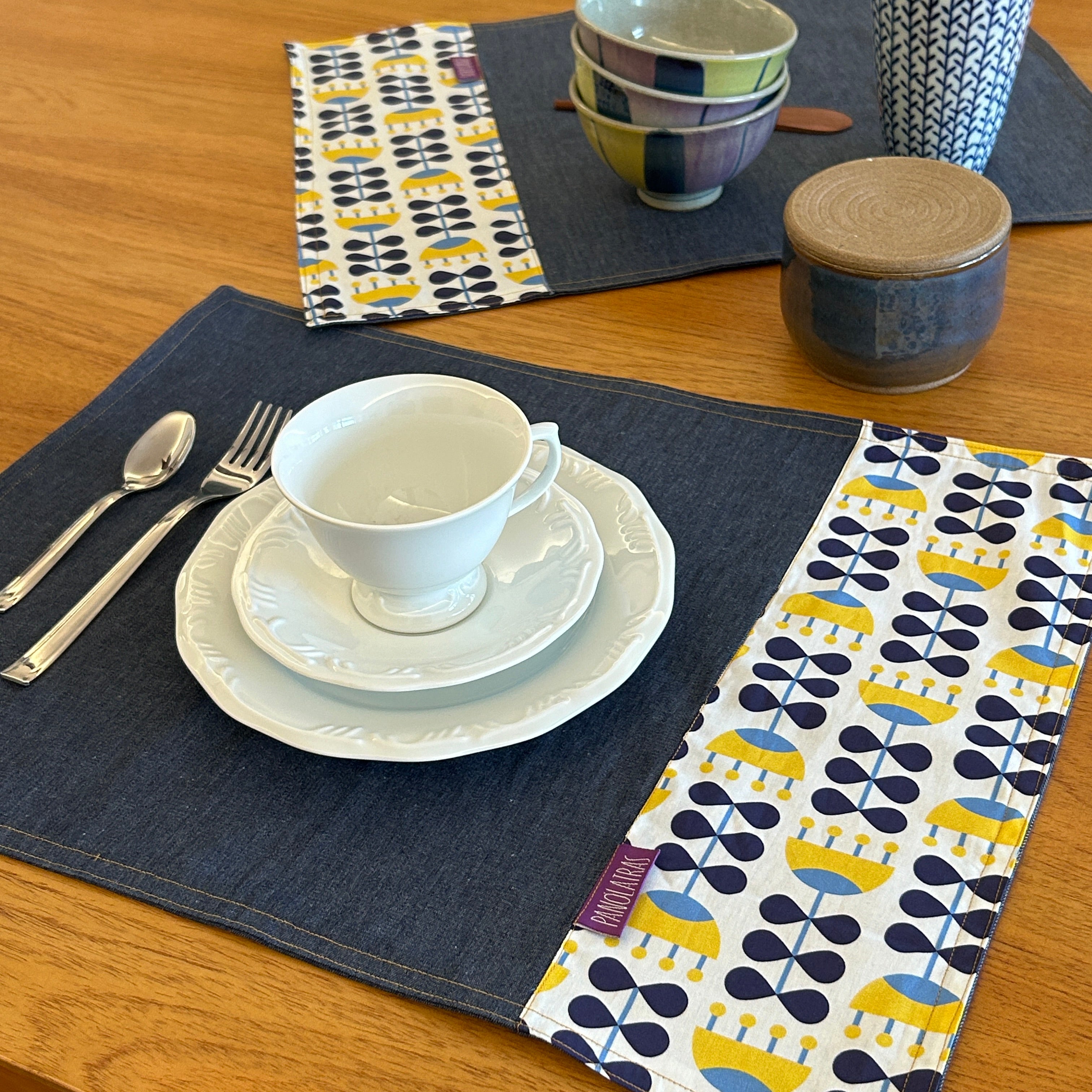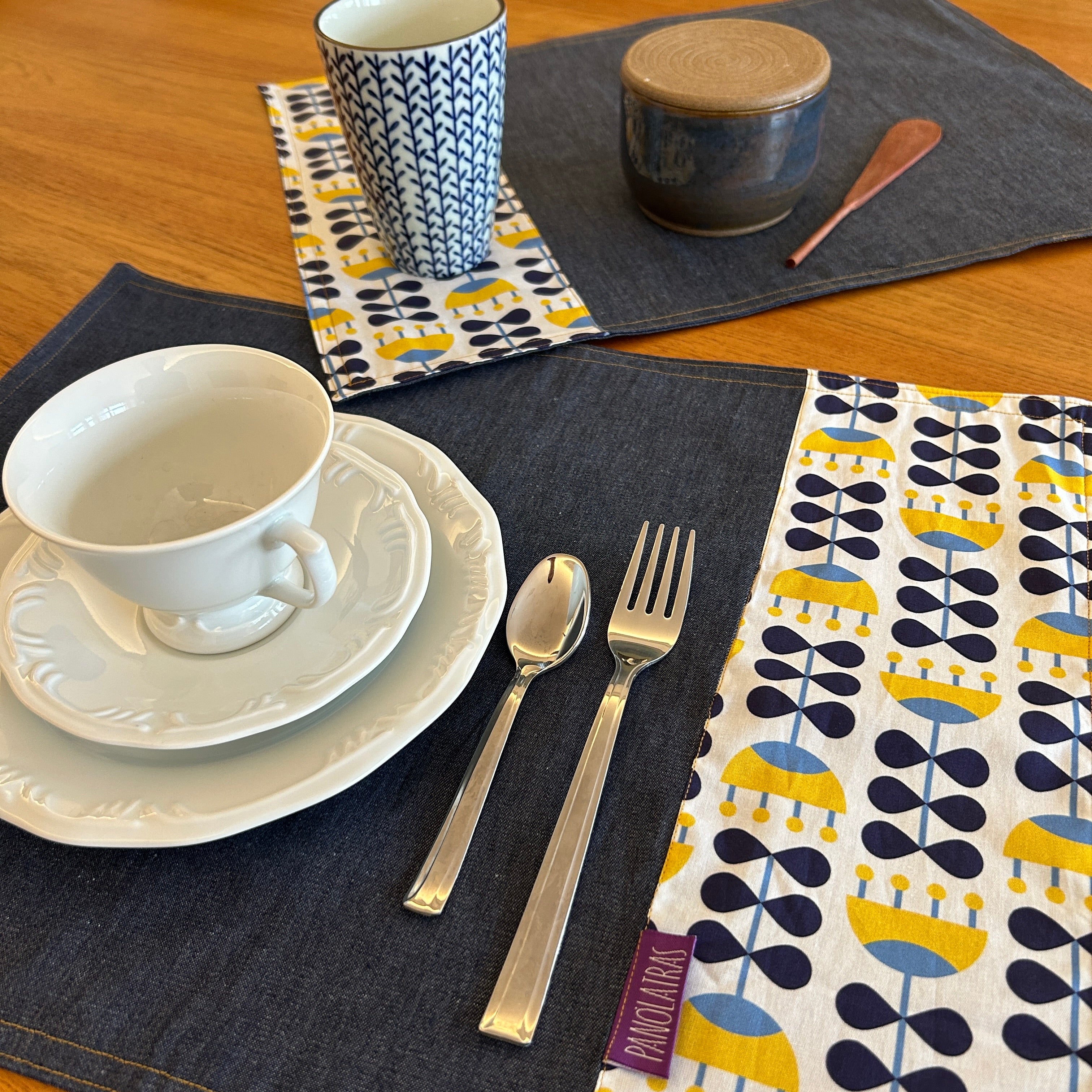 Uma mesa posta com mais cor, estilo e funcionalidade. Nossos jogos americanos são confeccionados em jeans leve e tricoline estampada 100% algodão — com as estampas exclusivas Panólatras que você já conhece.
