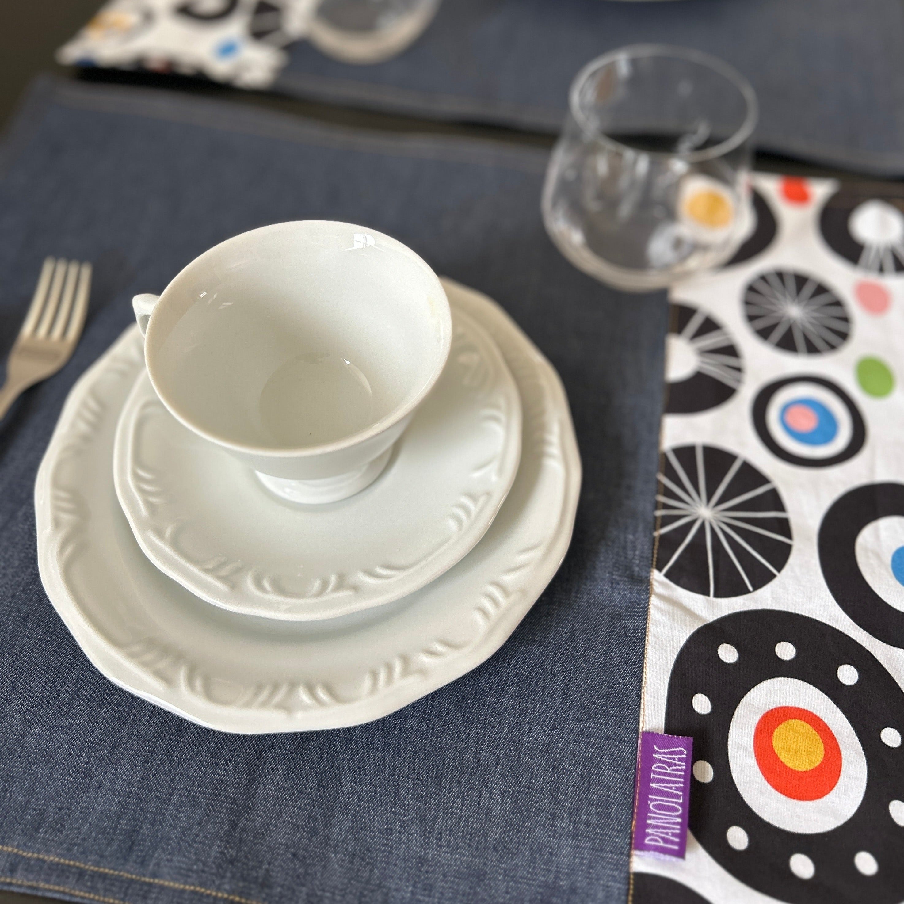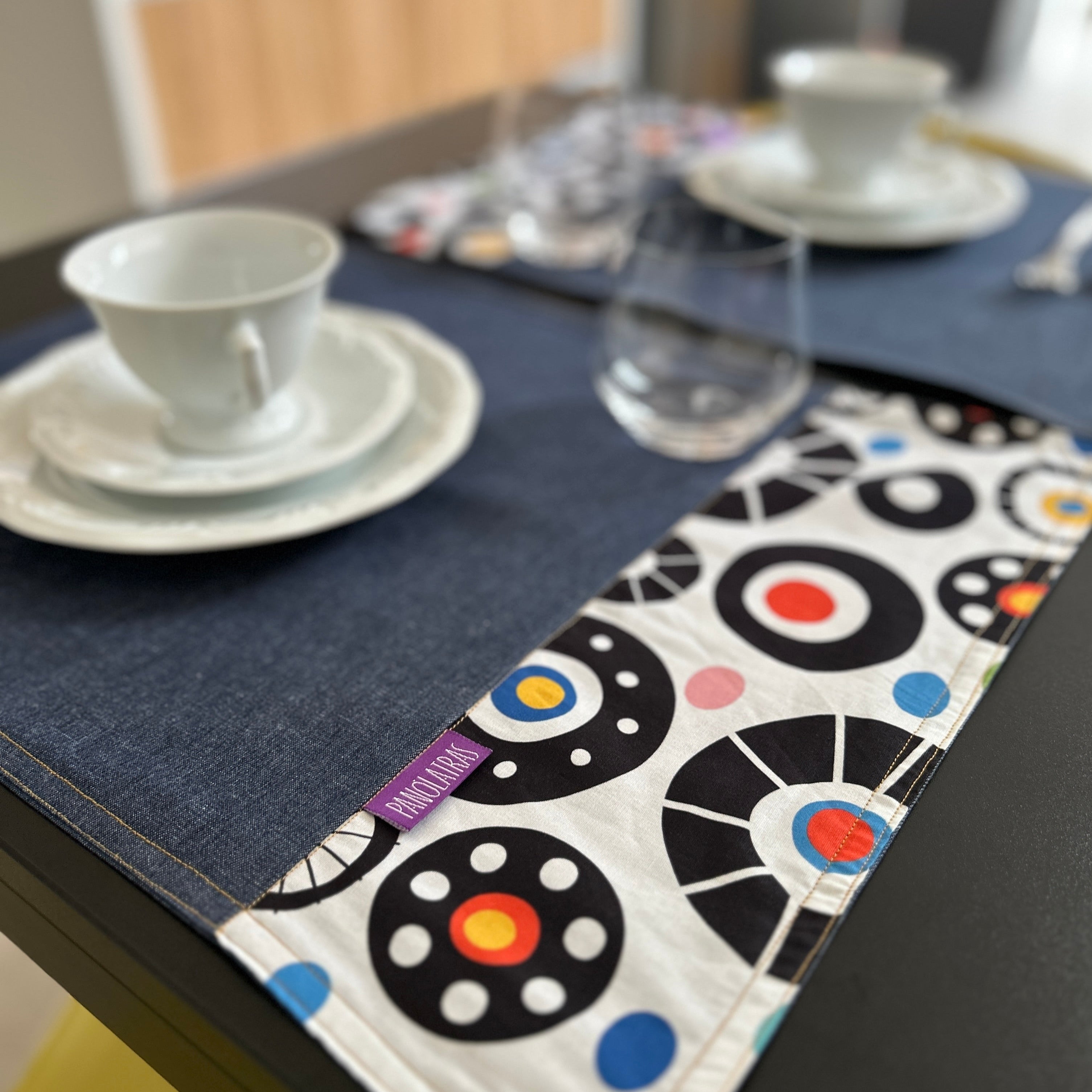 Uma mesa posta com mais cor, estilo e funcionalidade. Nossos jogos americanos são confeccionados em jeans leve e tricoline estampada 100% algodão — com as estampas exclusivas Panólatras que você já conhece.