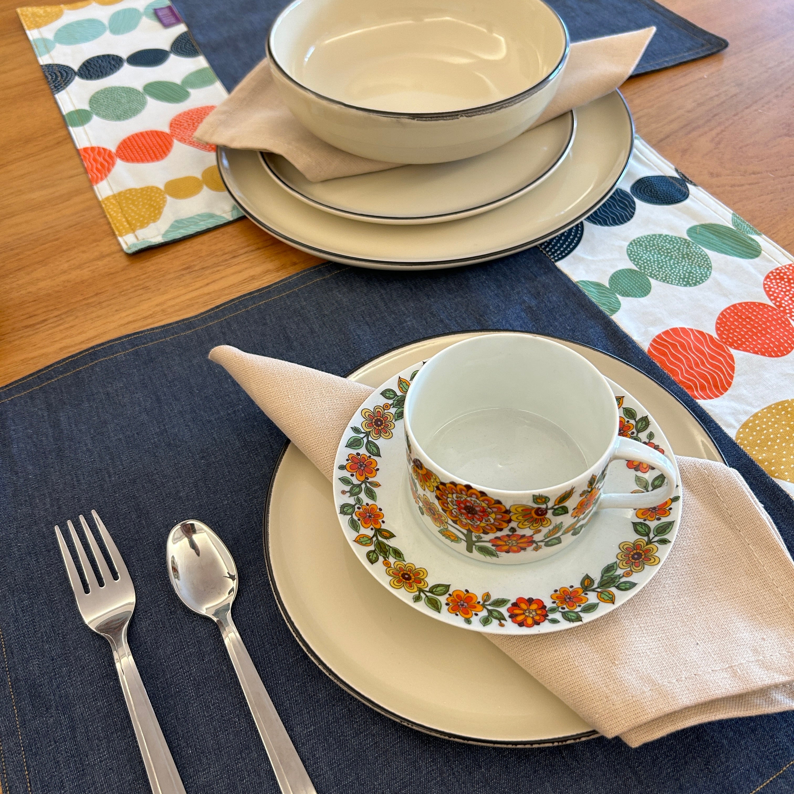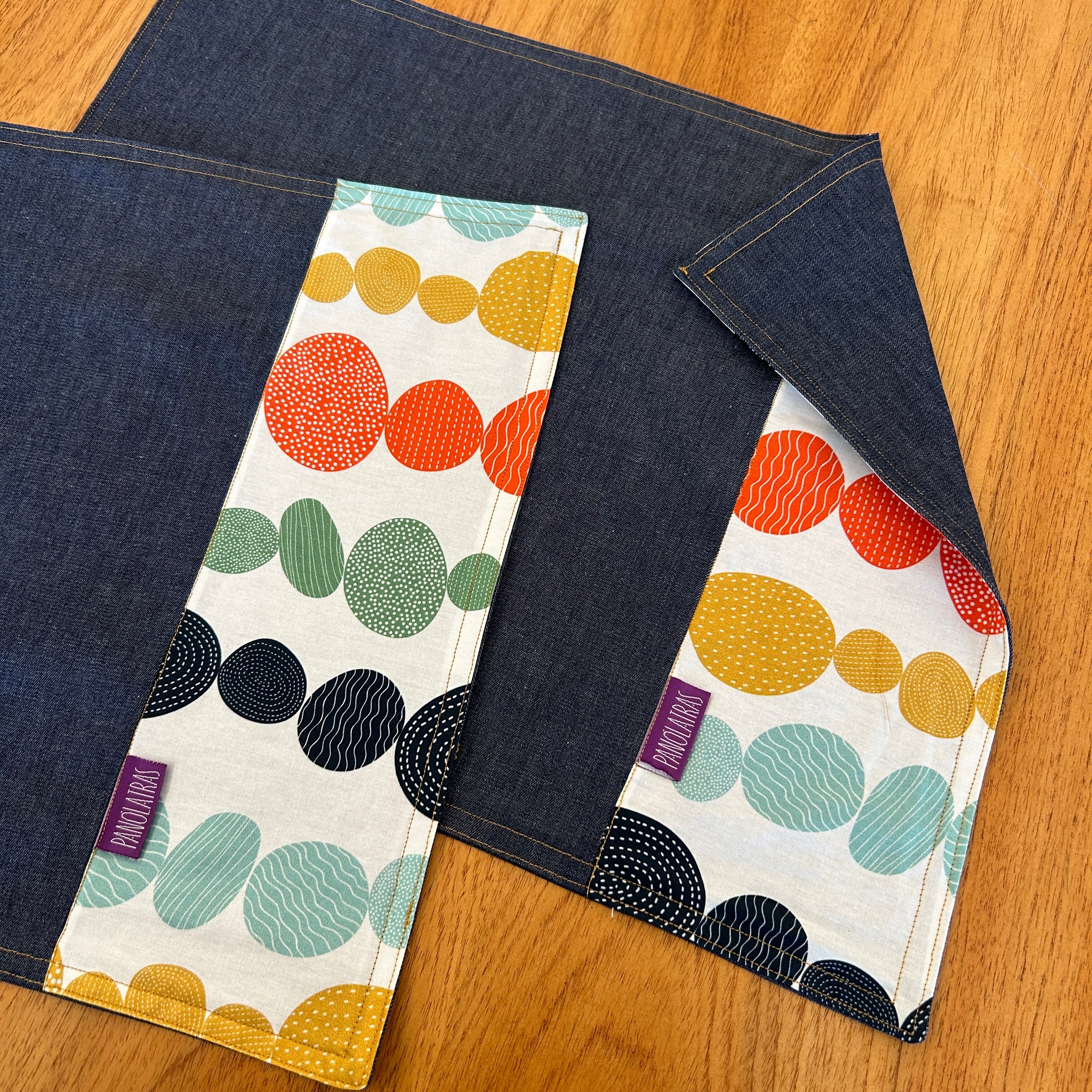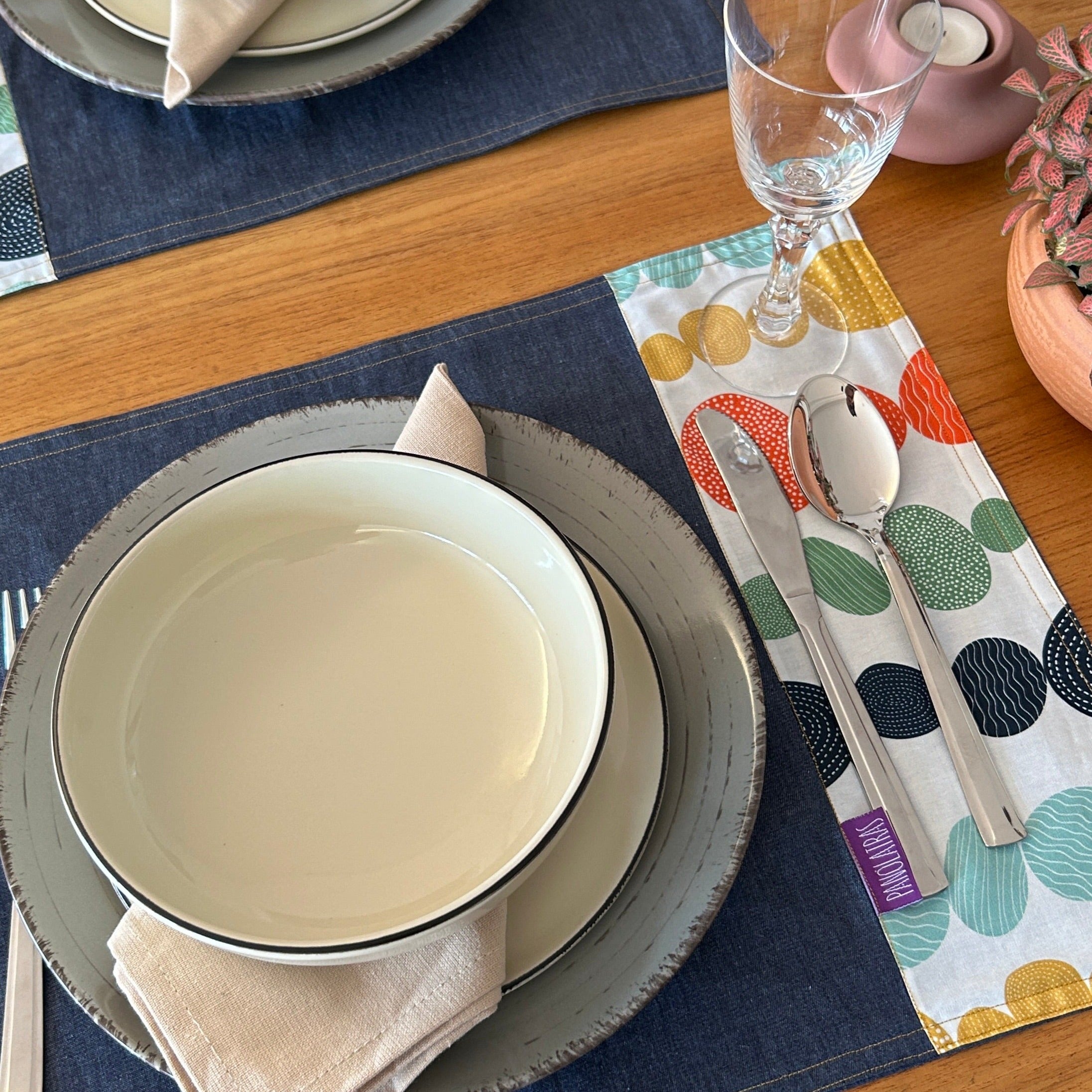Uma mesa posta com mais cor, estilo e funcionalidade. Nossos jogos americanos são confeccionados em jeans leve e tricoline estampada 100% algodão — com as estampas exclusivas Panólatras que você já conhece.