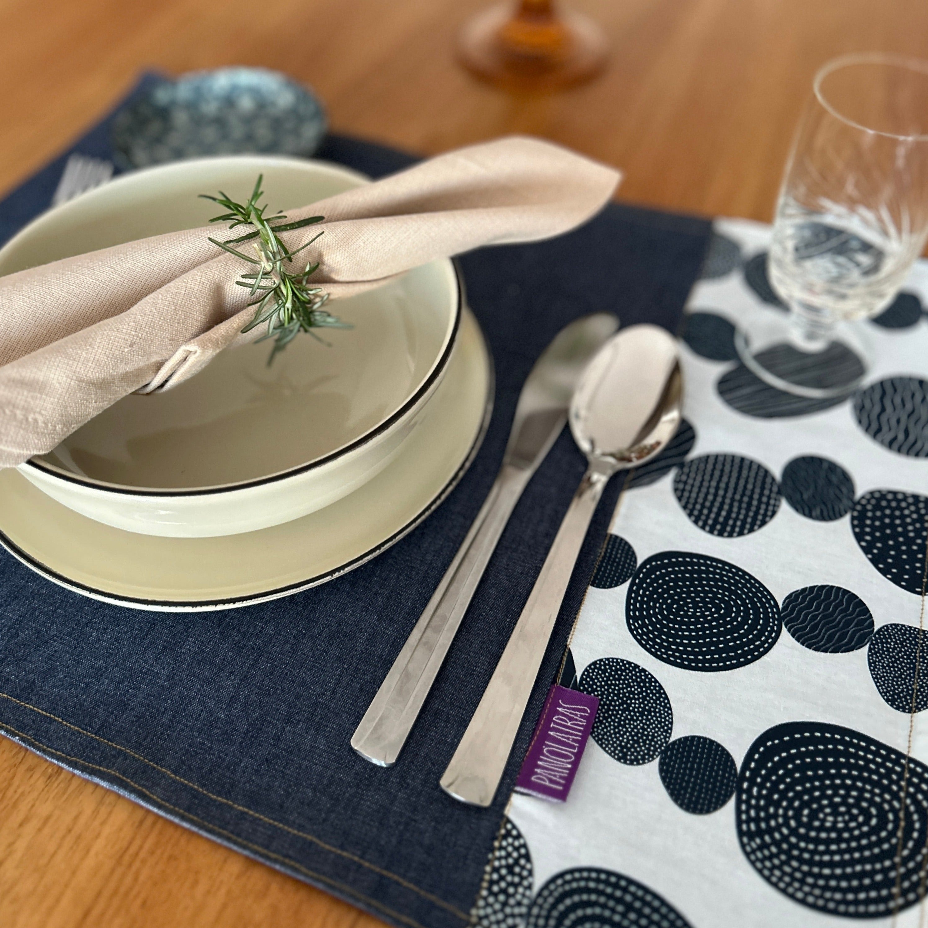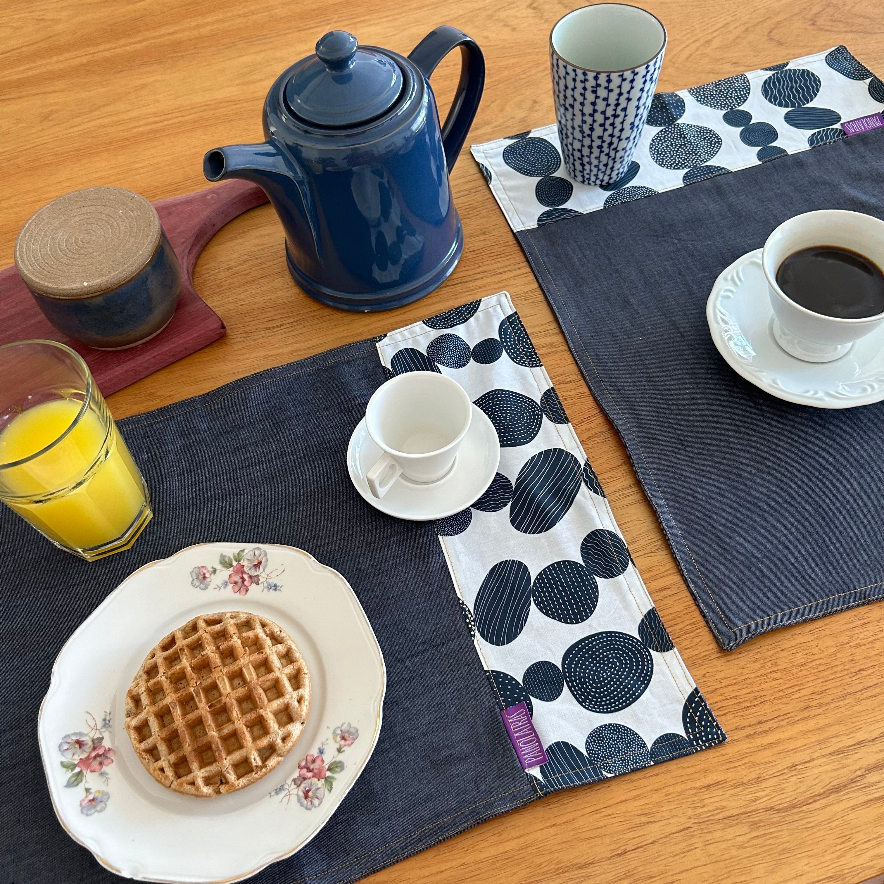 Uma mesa posta com mais cor, estilo e funcionalidade. Nossos jogos americanos são confeccionados em jeans leve e tricoline estampada 100% algodão — com as estampas exclusivas Panólatras que você já conhece.