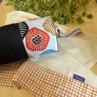 Feito em sacaria lisa 100% algodão, o pano de copa tem cor cru natural, textura rústica e barrado em tricoline com estampas autorais Panólatras. É absorvente, macio e vem com alcinha lateral para pendurar.