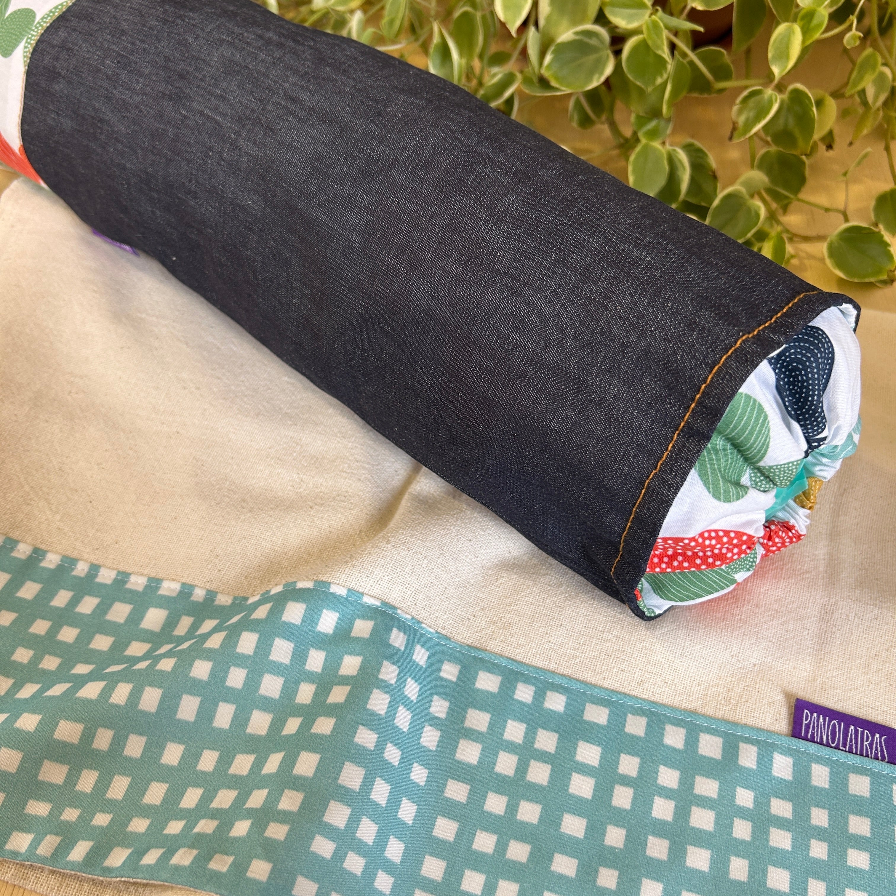 O puxa saco é confeccionado em jeans leve (denim 100% algodão), com barrado em tricoline estampada combinando. Uma peça prática e indispensável para armazenar sacolas plásticas com charme e funcionalidade no dia a dia.