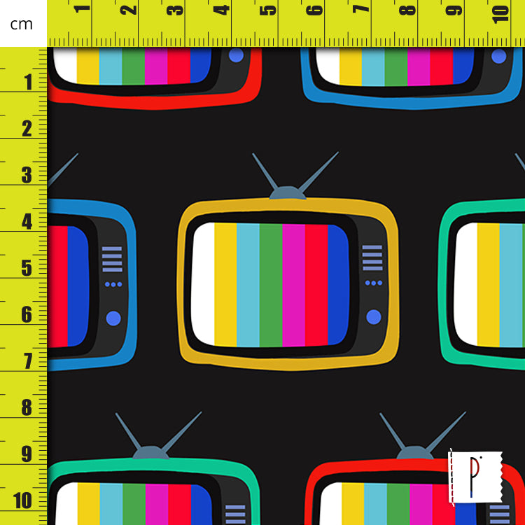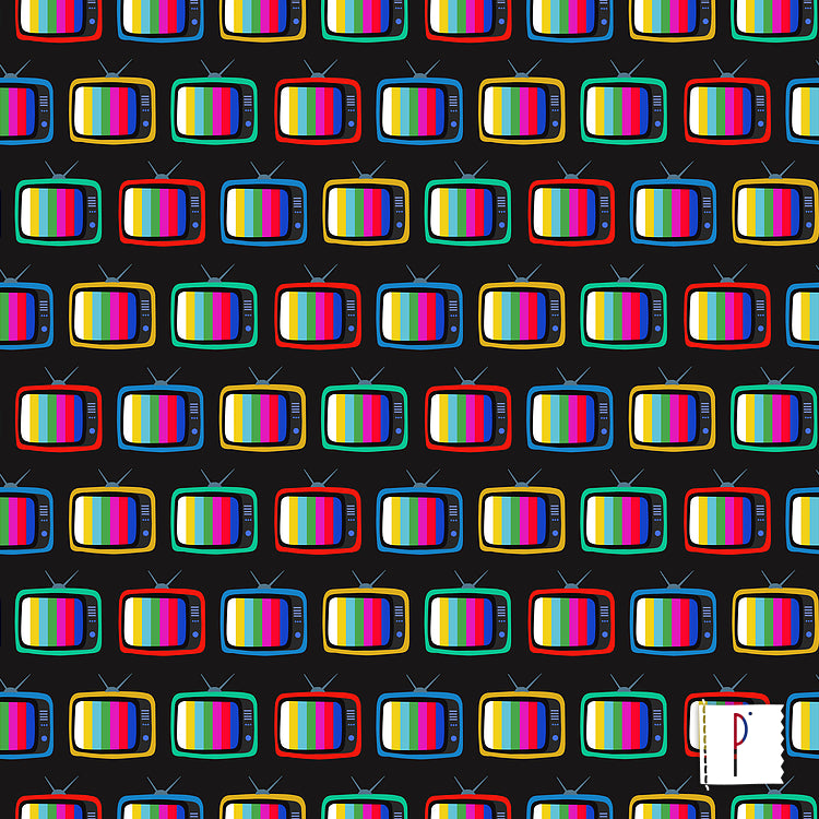 Tecido Tricoline Estampa TVs em Preto